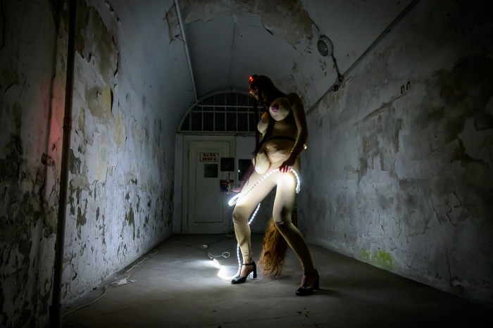 Une réflexion corporelle sur le poids de la séduction, ses codes et ses attentes, réelles ou fantasmées, dans un dispositif se référant au peepshow.