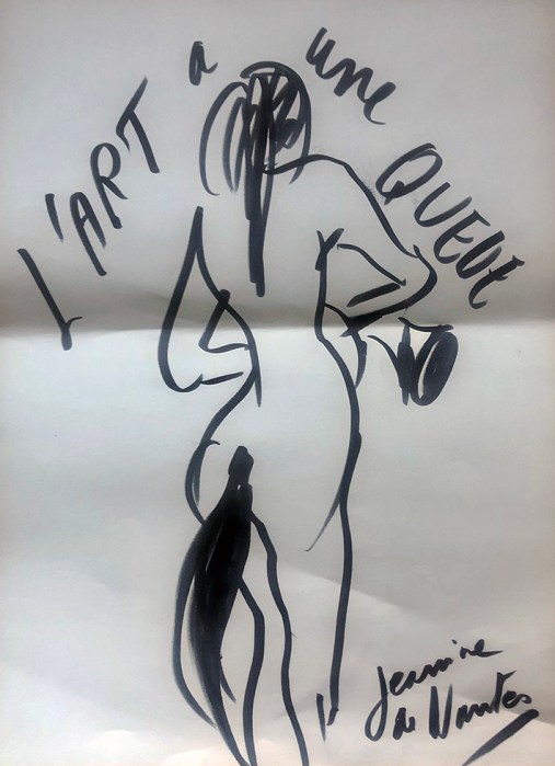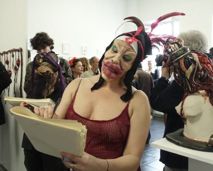 « Un dessin est intéressant ou pas, comme un livre ou un film. » Laurent Quénéhen, commissaire d’exposition de Salo, salon du dessin érotique. C’est lui qui en décide et intègre ou non les propositions reçues (500 en moyenne) simplement accompagnées du nom de leur auteur·ice. Ce protocole réussit le tour de force d’être à la fois démocratique et despotique, puisque les œuvres sont soumises à l’appréciation d’un seul et même regard. Regard aguerri cependant, le résultat est toujours intéressant, qu’on y adhère ou non. Le vernissage de Salo est toujours bondé, d’exposant·es, de refusé·es, de futur·es postulant·es. La performance Parler d’Art questionne dans un esprit punk la validation de l’artiste, qui l’est, qui ne l’est pas, qui en décide ? Et s’en affranchit.