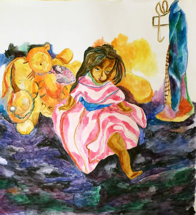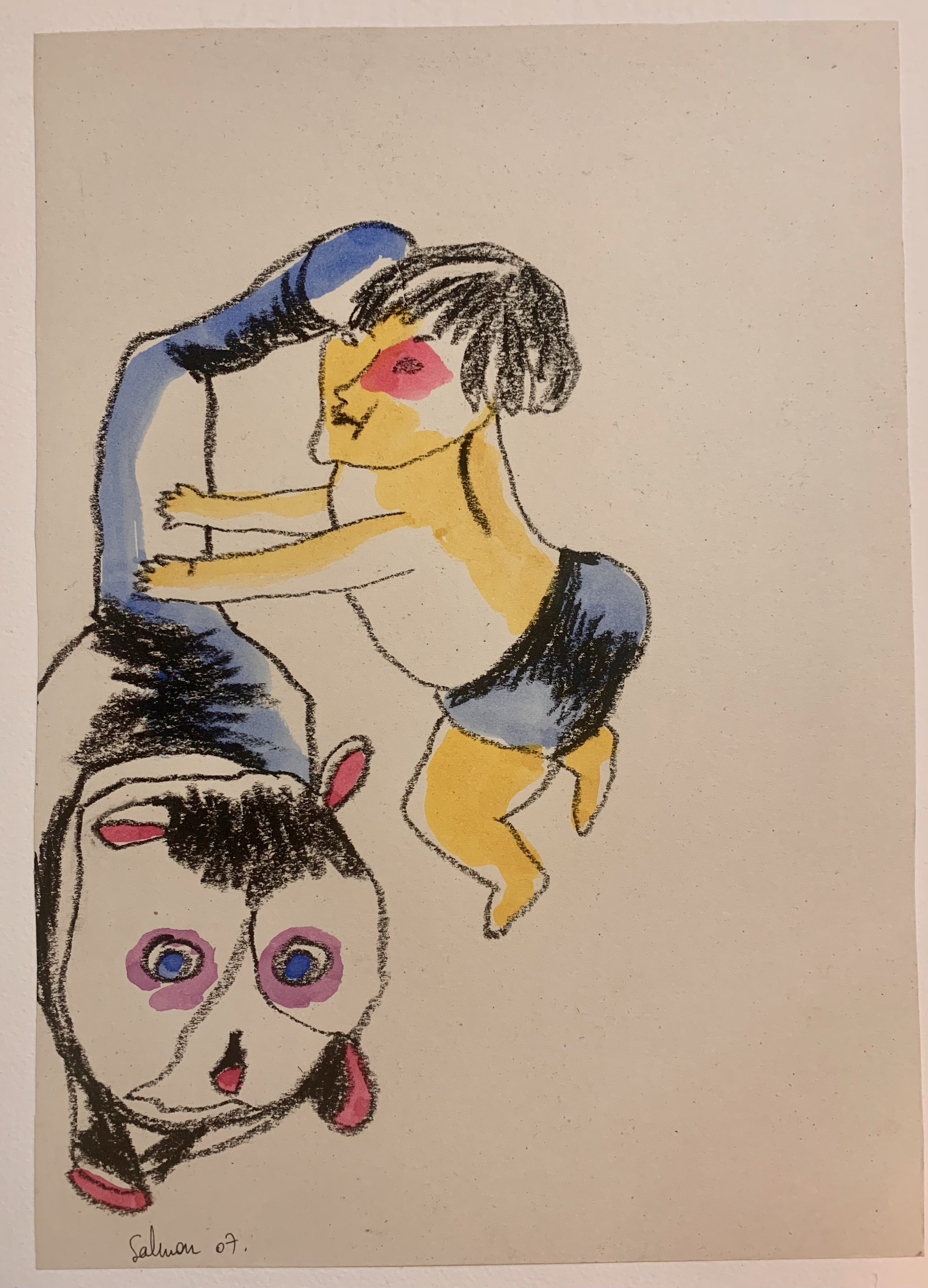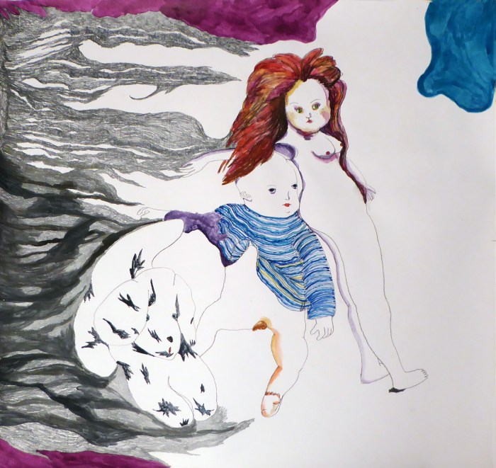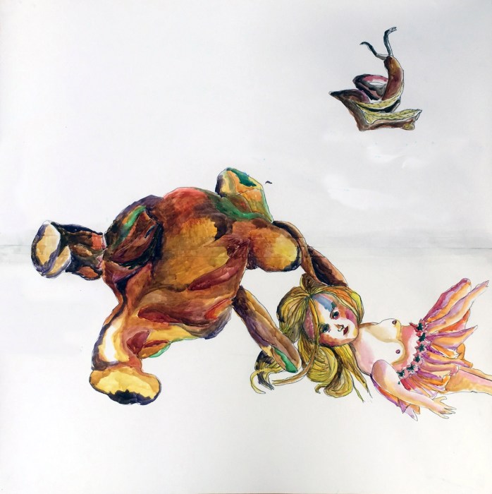 En 2007, je fais durant une année le portrait de jouets de ma fille aînée, tandis qu’elle est à l’école. Encre sur papier.